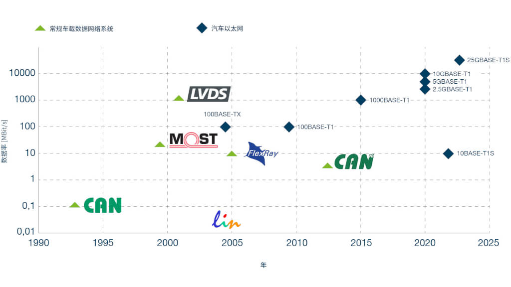 多年以来,像LIN、CAN和FlexRay这些系统已成为车辆中领先且可靠的车载网络系统。这些系统不再能够满足当今的要求。
